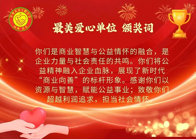 大会隆重表彰了在2025年度公益事业中涌现出的先进个人与集体。丁雨、杨新叶等20人获评“最美志愿者”;王瑞健、张小菊等9人荣获“公益奉献之星”称号;马明清、李莹等10人被评为“公益传播大使”。山西宏伟矿业有限责任公司、灵丘农村商业银行股份有限公司、灵丘县小苹果幼儿园等11家爱心单位获授“最美爱心单位”荣誉。颁奖词深情致敬了获奖者与单位在平凡中彰显伟大、在奉献中传递温暖的公益情怀。