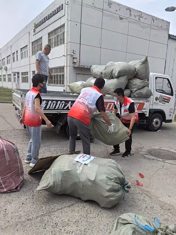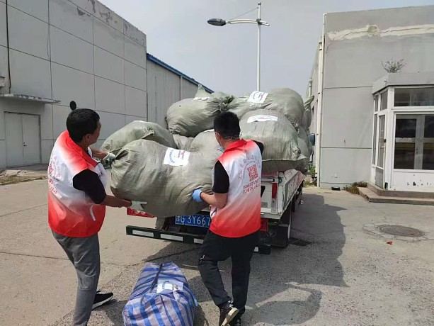 最后,到了最艰巨的装车任务。小包装进大袋后,每袋重量100多斤,几十袋物资需要装上车,这只能靠王毅和王俊升两位男士来完成。当他们将一袋袋沉甸甸的衣物连搬带抛地安放在车上时,站在一旁的志愿者们不约而同地响起了热烈的掌声,为满头大汗的他们喝彩。在大家的共同努力下,3000多斤的物资顺利装好了车。物流司机仔细地将物资一圈一圈固定好,然后稳稳地开出了爱心库房的大院。看着满载物资的车渐渐远去,志愿者们的眼前仿佛浮现出了大凉山孩子和家人们那灿烂温暖的笑容,他们衷心祝愿这些物资能为大凉山的人们带去温暖和幸福。
