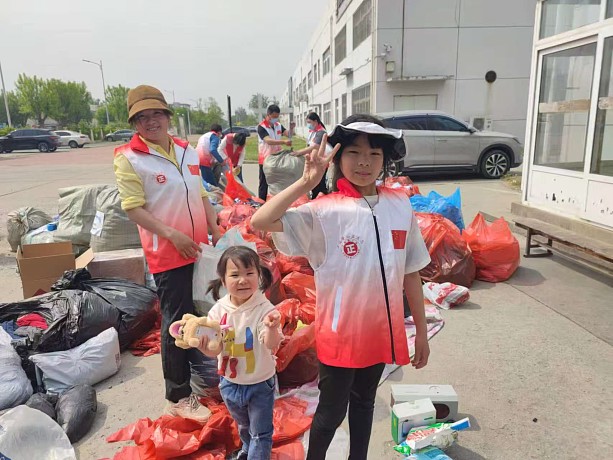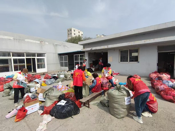 马季主任和王毅不停地从库房往外搬运物资,随着他们的努力,满屋子的物资逐渐减少,院子里却渐渐呈现出集市般热闹而有序的场面。志愿者刘玉平考虑到自己岁数大腰不好,她提前搬好了凳子,准备大干一场;旁边9岁的姜兰馨小朋友也毫不示弱,她坐在刘玉平身旁,认真地分拣着儿童衣服,更可爱的是,她还带着3岁的小妹妹在一旁帮忙。这两个小小的身影坐在一堆堆衣物中间,宛如花海中最娇艳的玫瑰,散发着香气与光芒。原来,她们是在妈妈袁青青的带领下参与到公益活动中来的。袁青青正在院子的另一边和魏霞主任一起打包大人的衣服,只见她们动作娴熟,边拣边装,一包打完就迅速拎起来放在集中的地方,袁青青总是抢着干出力的活儿。70多岁的刘巾莉大姐真的是老当益壮,和5位平均年龄70岁的老姐姐们一起撸起袖子,分拣、整理、折叠、打包、贴标,每一步认真仔细,不亚于年轻的小伙子。